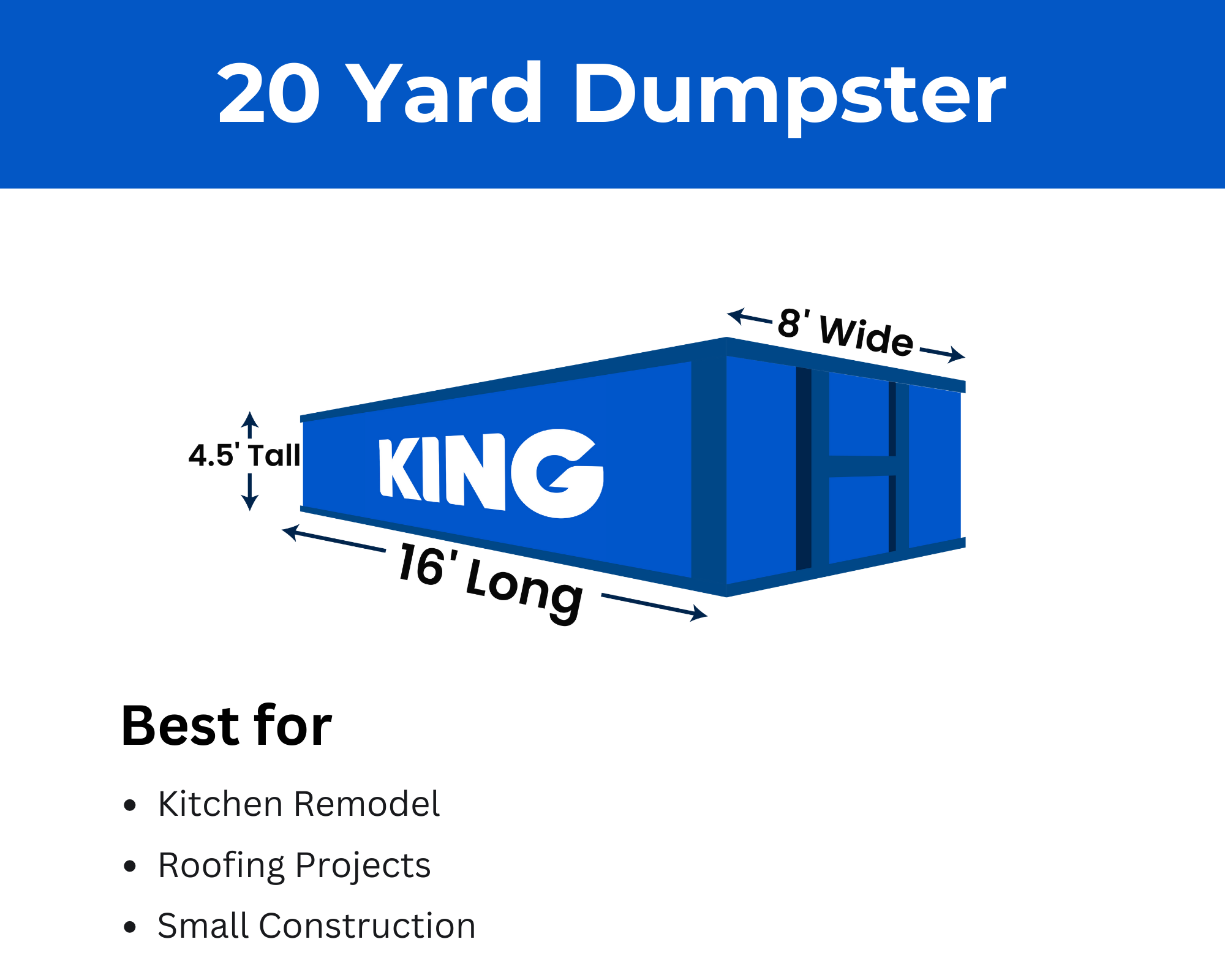 With thousands of customers served and hundreds of five star reviews, King Dumpsters is your go-to option for commercial dumpster rental. Local and family owned, we take pride in offering exceptional service at affordable rates. When you rent a roll off dumpster from King Dumpsters, you can expect communication, quality dumpsters and friendly service.